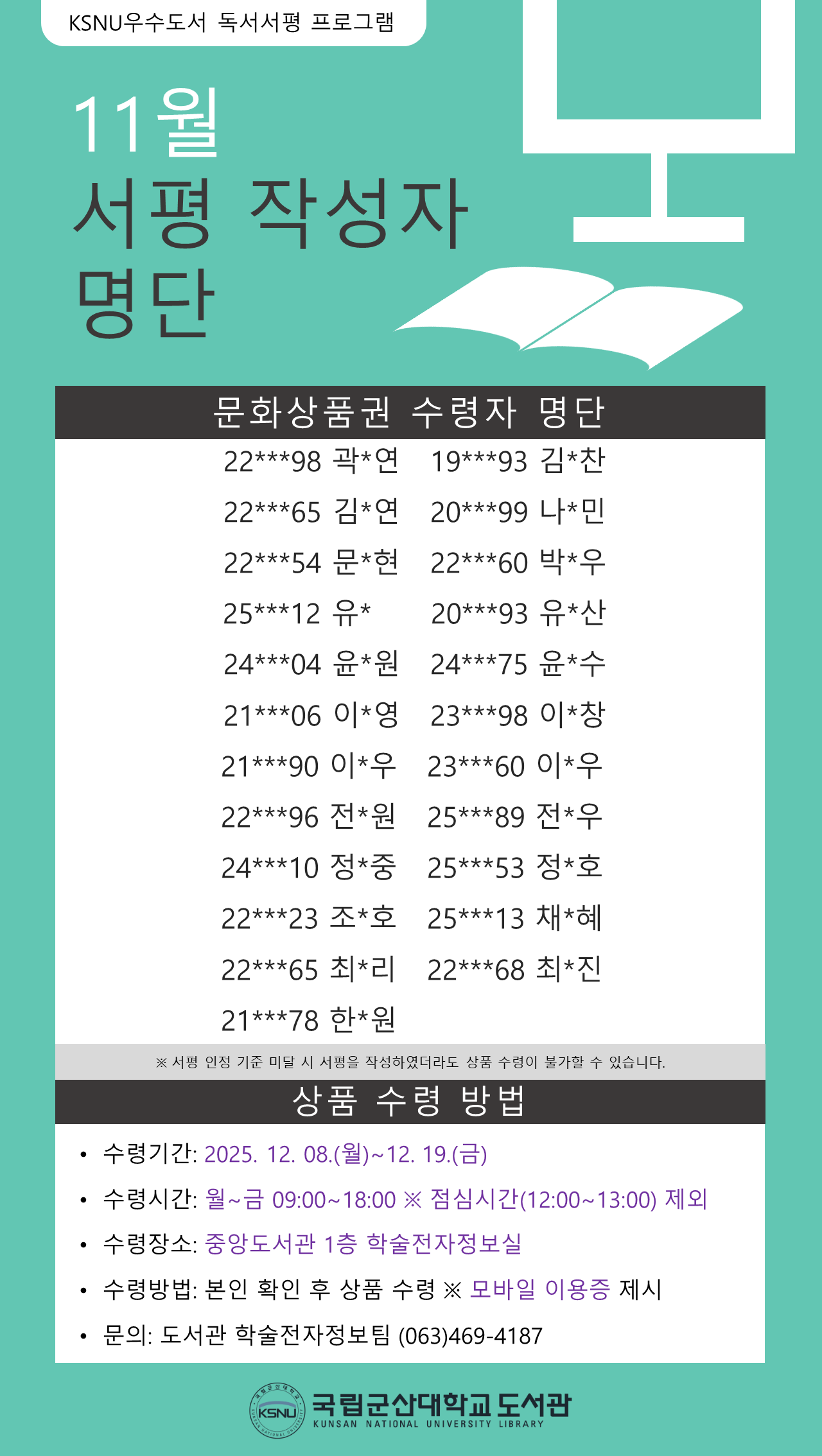 11¿ù KSNU¿ì¼öµµ¼ µ¶¼¼Æò °æÇ° ¼ö·ÉÀÚ ¹ßÇ¥ °Ô½Ã¹° ³»¿ë º¸±â