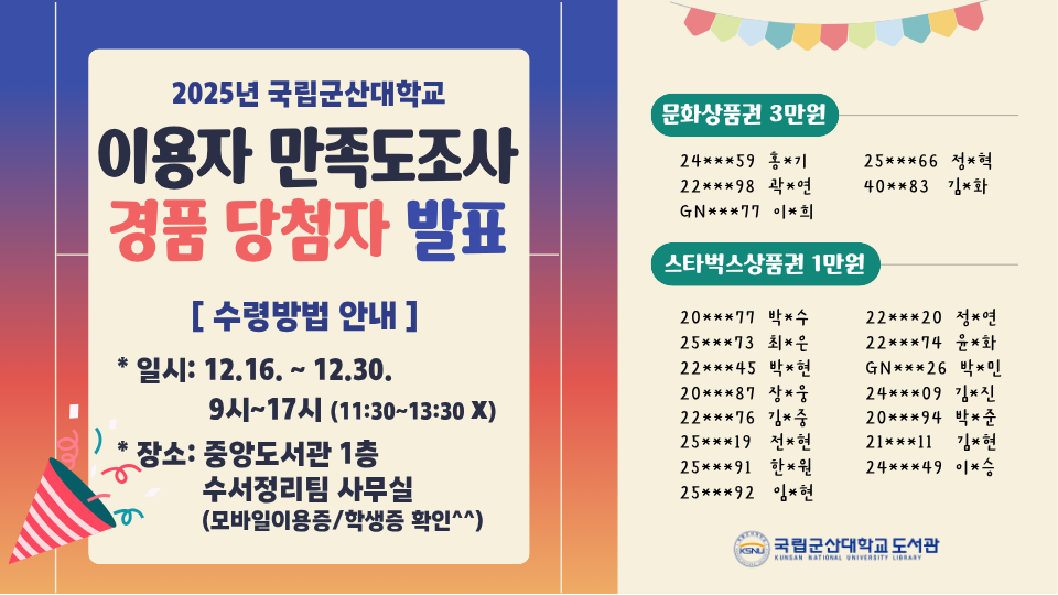 | ¡ä ´ÙÀ½±Û | 2025 KSNU¿ì¼öµµ¼ µ¶Èݨ °ø¸ðÀü ¼ö»óÀÚ ¹ßÇ¥ |