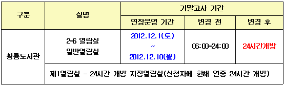 | ¡â ÀÌÀü±Û | Áß¾Óµµ¼°ü ÀÚ·á½Ç 23½Ã±îÁö ¿¬Àå ¿î¿µ(11/28~12/10) |