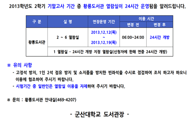 Ȳ·æµµ¼°ü 24½Ã°£ ¿î¿µ(12.12~12.19) °Ô½Ã¹° ³»¿ë º¸±â