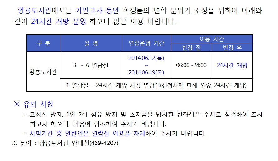 Áß¾Óµµ¼°ü ½ÃÇè±â°£ ÀÚ·á½Ç ¿¬Àå¿î¿µ(6/9~19)