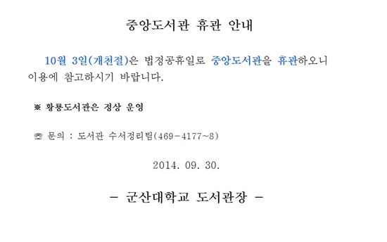 Áß¾Óµµ¼°ü ÈÞ°ü ¾È³»(10.3.) °Ô½Ã¹° ³»¿ë º¸±â