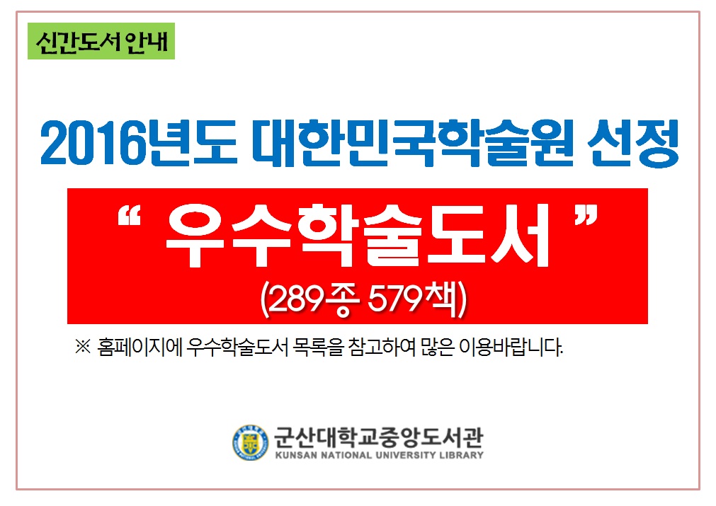 | Á¦ ¸ñ | 2016³âµµ ´ëÇѹα¹Çмú¿ø¼±Á¤ ¿ì¼öÇмúµµ¼ ÀÌ¿ë¾È³» | ||||