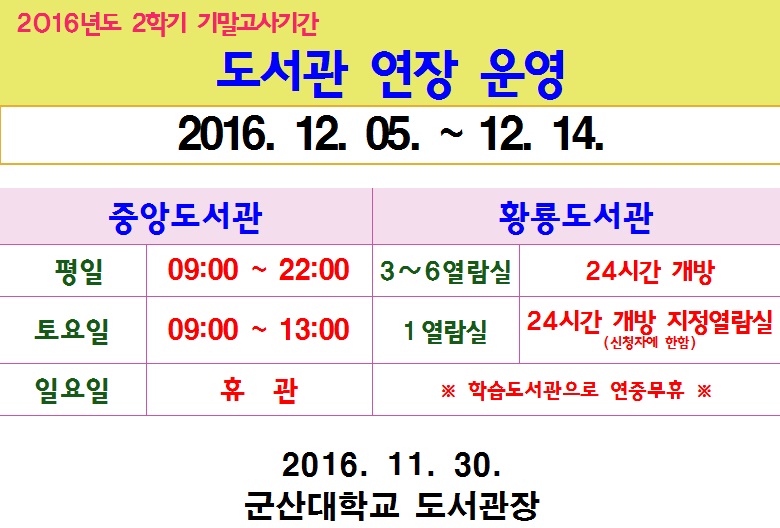 2016Çг⵵ 2Çб⠱⸻°í»ç±â°£ ¿¬Àå¿î¿µ ¾È³» °Ô½Ã¹° ³»¿ë º¸±â