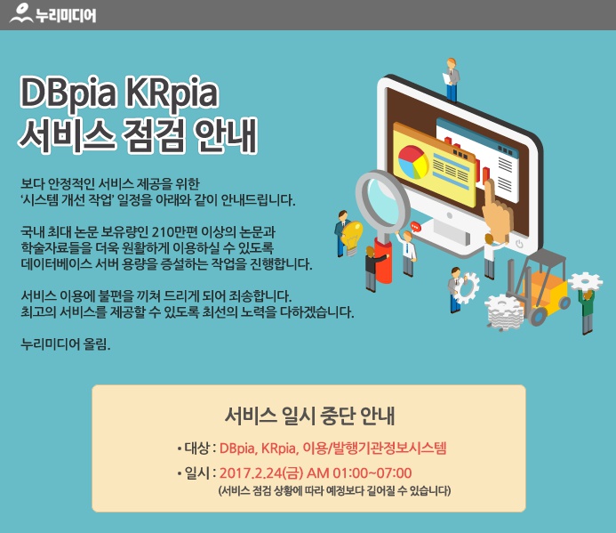 [ÇмúDB]DBpia, KRpia ¼ºñ½º Á¡°Ë ¾È³» °Ô½Ã¹° ³»¿ë º¸±â