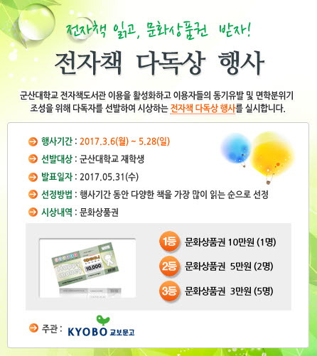 ¡Ø¼±Á¤¹æ¹ý ¹× ±âÁØ : Çà»ç±â°£ µ¿¾È ´Ù¾çÇÑ Ã¥À» °¡Àå ¸¹ÀÌ Àд ¼øÀ¸·Î ¼±Á¤(´Ü¼øÅ¬¸¯ ¼ö Á¦¿Ü) ¹®ÀÇ : Áß¾Óµµ¼°ü ÇмúÀüÀÚÁ¤º¸ÆÀ(469-4188~7)