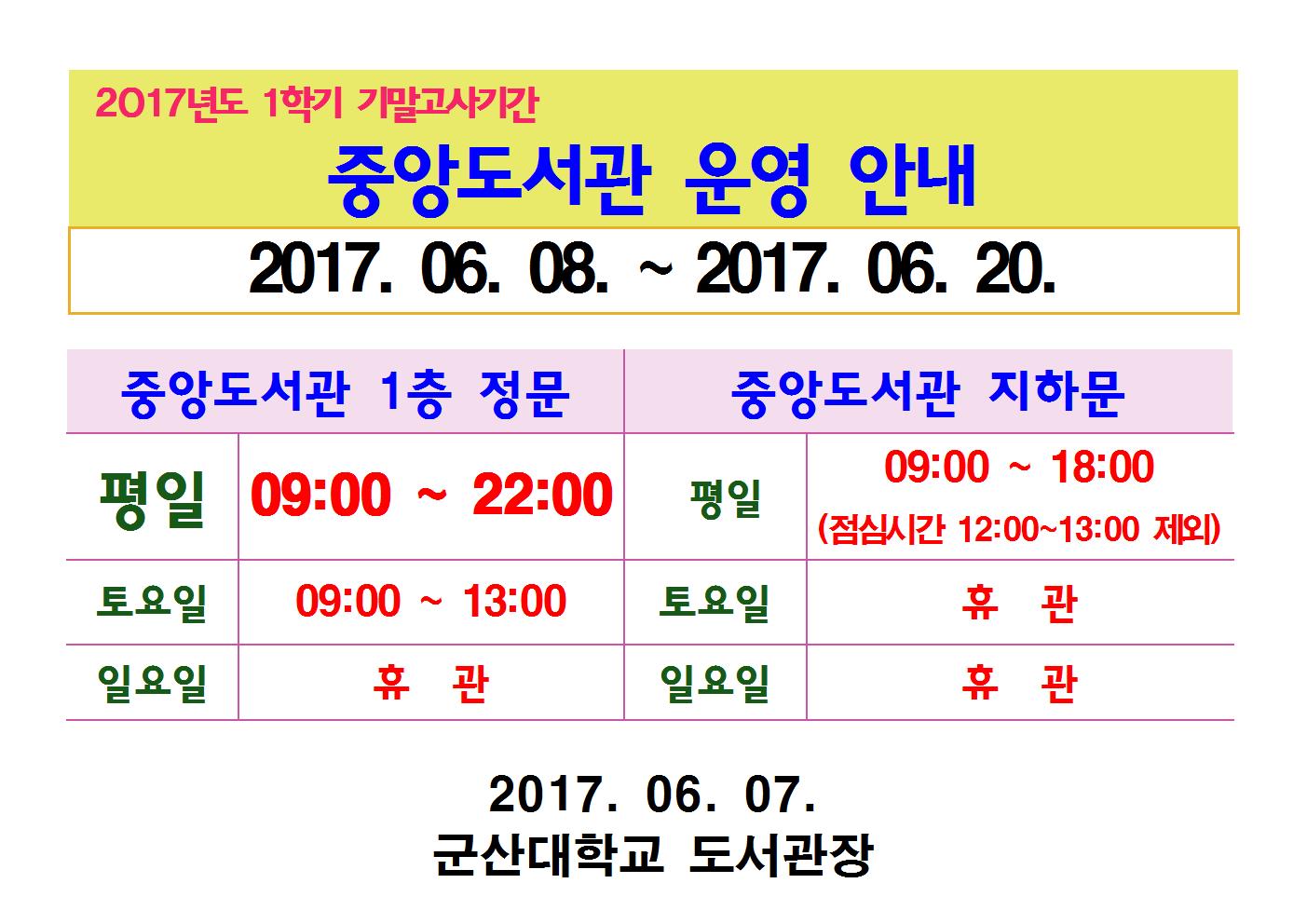 | Á¦ ¸ñ | [¼öÁ¤]2017Çг⵵ 1Çб⠱⸻°í»ç±â°£ ¿¬Àå¿î¿µ ¾È³» | ||||