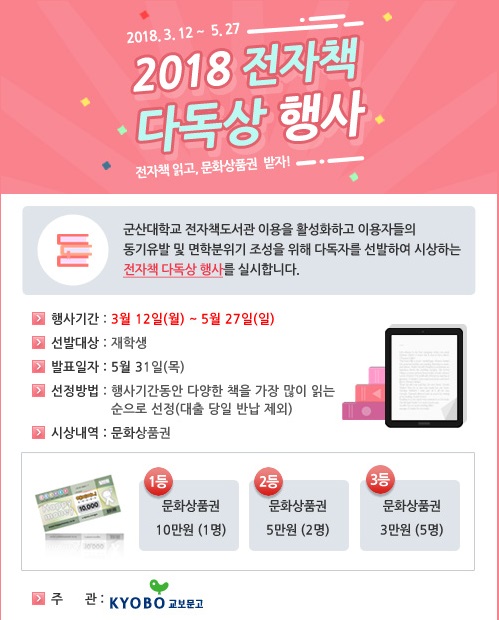 ¡Ø¼±Á¤¹æ¹ý ¹× ±âÁØ : Çà»ç±â°£ µ¿¾È ´Ù¾çÇÑ Ã¥À» °¡Àå ¸¹ÀÌ Àд ¼øÀ¸·Î ¼±Á¤(´Ü¼øÅ¬¸¯ ¼ö Á¦¿Ü) ¹®ÀÇ: Áß¾Óµµ¼°ü ÇмúÀüÀÚÁ¤º¸ÆÀ(¢Ï469-4188)