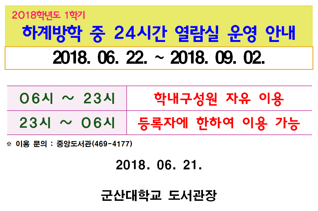 2018Çг⵵ ÇÏ°è¹æÇÐÁß 24½Ã°£ ¿¶÷½Ç ¿î¿µ ¾È³»