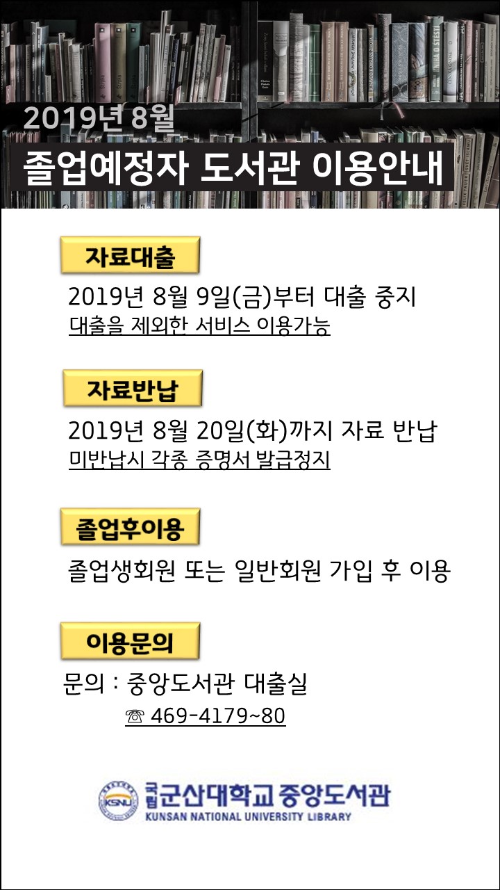 2019³âµµ 8¿ù Á¹¾÷¡¤¼ö·á ¿¹Á¤ÀÚ µµ¼°ü ÀÌ¿ë ¾È³»
