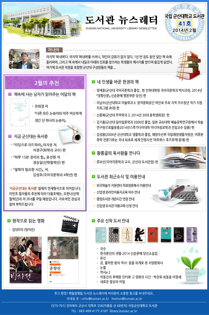 Æì³»¸ç('´ëÇлçȸÀÇ Çãºê, µµ¼°üÀ» ¸¸µç´Ù')5¿ùÀÇ Ãßõ '»ç¼°¡ ÃßõÇÏ´Â ÀÌ´ÞÀÇ Ã¥, µµ¾²Ä« ´ÙÄ«¸¶»ç '¼¼°è ÃÖ°íÀÇ ÀÎÀçµéÀº ¿Ö ±âº»¿¡ ÁýÁßÇÒ±î'), µµ¼°üÃÖ±Ù¼Ò½Ä ¹× ÀÌ¿ë¾È³», ¿øÀÛÀ¸·Î Àд ¿µÈ( Á¶¶óÀÌÆ®ÀÇ ¡¸¿À¸¸°ú Æí°ß¡¹), ÁÖ¿ä ½ÅÂøµµ¼¾È³», 'Áö±Ý ±º»ê´ë´Â µ¶¼Áß'