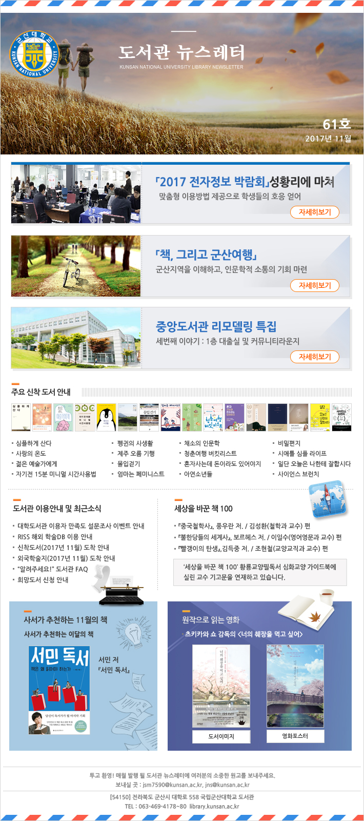 ÇмúÁ¤º¸¾È³», 3¿ùÀÇ Ãßõ '»ç¼°¡ ÃßõÇÏ´Â ÀÌ´ÞÀÇ Ã¥, (Åä¸Ó½º ±æ·ÎºñÄ¡ Àú 'ÀÌ ¹æ¿¡¼ °¡Àå ÁöÇý·Î¿î »ç¶÷'), µµ¼°ü ÃÖ±Ù ¼Ò½Ä ¹× ÀÌ¿ë¾È³», ¿øÀÛÀ¸·Î Àд ¿µÈ(ÀÌÀåÈÆ °¨µ¶ÀÇ¡¸Áö±Ý ¸¸³ª·¯ °©´Ï´Ù¡¹), ÁÖ¿ä ½ÅÂøµµ¼ ¾È³», '¼¼»óÀ» ¹Ù²ÛÃ¥100'