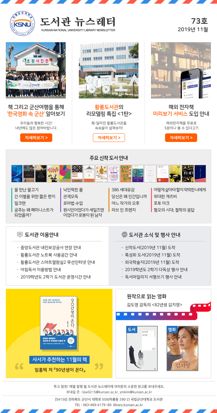 ÇмúÁ¤º¸¾È³», 11¿ùÀÇ Ãßõ '»ç¼°¡ ÃßõÇÏ´Â ÀÌ´ÞÀÇ Ã¥, (ÀÓÈ«Åà Àú '90³â»ýÀÌ ¿Â´Ù'), µµ¼°ü ÃÖ±Ù ¼Ò½Ä ¹× Çà»ç, ÀÌ¿ë¾È³», ¿øÀÛÀ¸·Î Àд ¿µÈ(±èµµ¿µ °¨µ¶ÀÇ¡¸82³â»ý ±èÁö¿µ¡¹), ÁÖ¿ä ½ÅÂøµµ¼ ¾È³» °Ô½Ã¹° ³»¿ë º¸±â