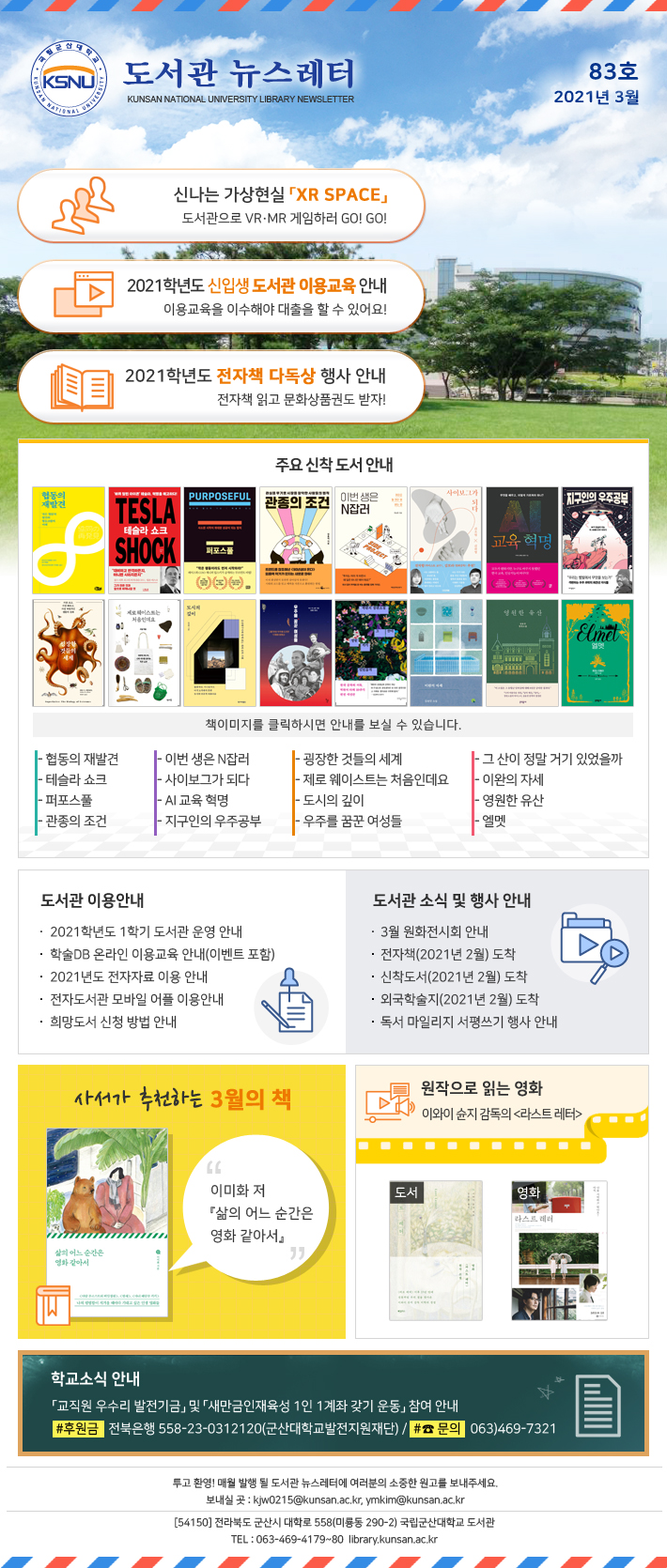 ÇмúÁ¤º¸¾È³», 3¿ùÀÇ Ãßõ '»ç¼°¡ ÃßõÇÏ´Â ÀÌ´ÞÀÇ Ã¥, (À̹ÌÈ Àú '»îÀÇ ¾î´À ¼ø°£Àº ¿µÈ°°¾Æ¼'), µµ¼°ü ÃÖ±Ù ¼Ò½Ä ¹× Çà»ç, ÀÌ¿ë¾È³», ¿øÀÛÀ¸·Î Àд ¿µÈ(ÀÌ¿ÍÀÌ 슌Áö °¨µ¶ÀÇ¡¸¶ó½ºÆ® ·¹ÅÍ¡¹), ÁÖ¿ä ½ÅÂøµµ¼ ¾È³» °Ô½Ã¹° ³»¿ë º¸±â