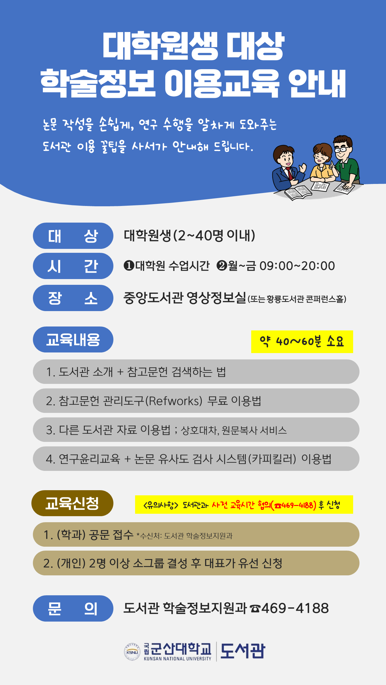 µµ¼°ü¿¡¼ ´ëÇпø»ý ¿¬±¸ ¼öÇà°ú ³í¹® ÀÛ¼º¿¡ µµ¿òÀÌ µÇ´Â ÇмúÁ¤º¸ À̿뱳À°&¿¬±¸À±¸®±³À°À» Á¦°øÇϰí ÀÖ½À´Ï´Ù.