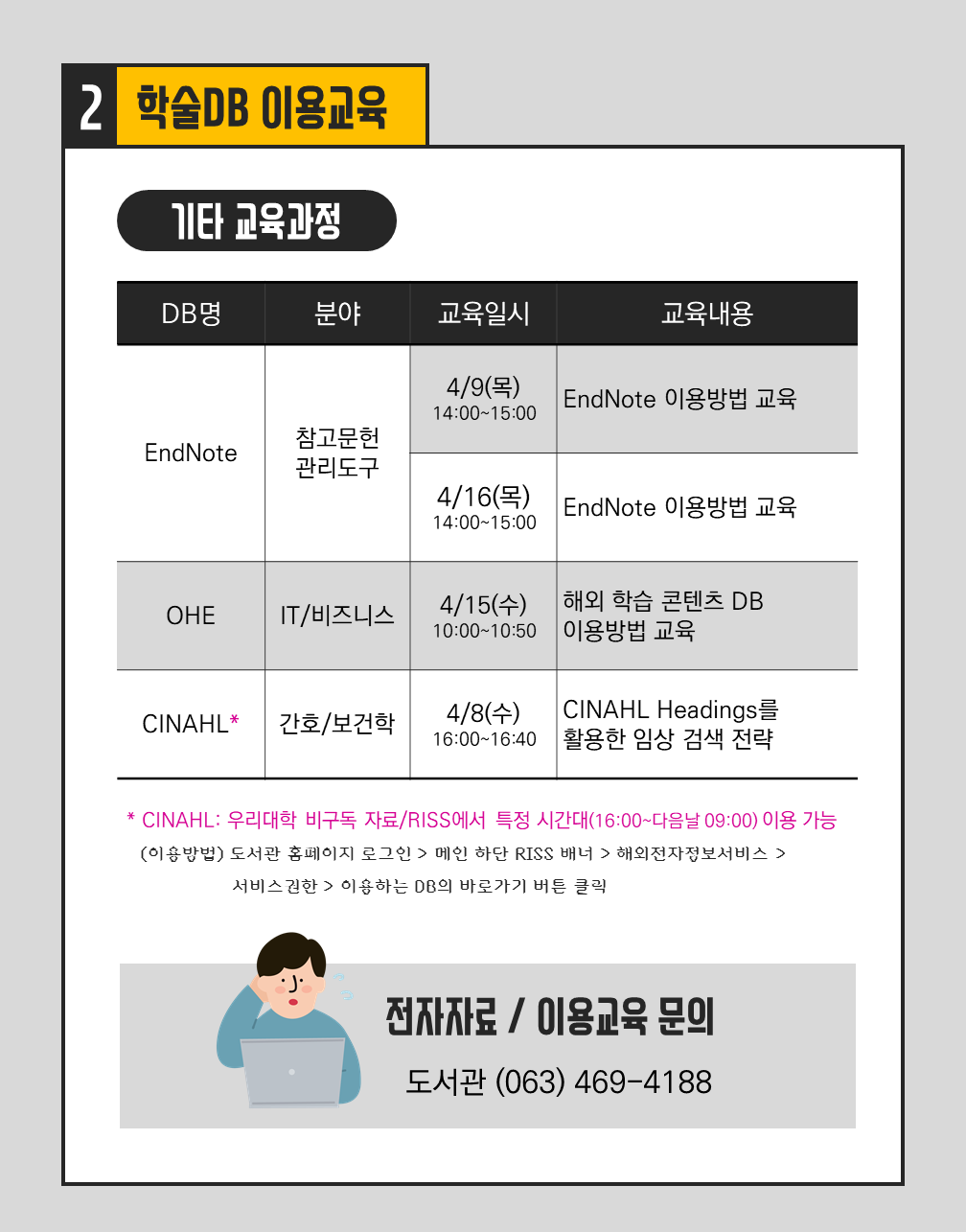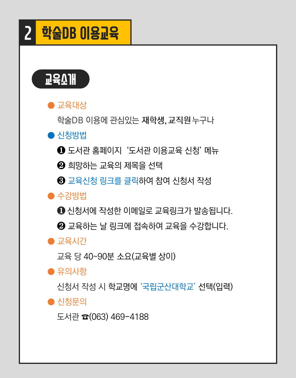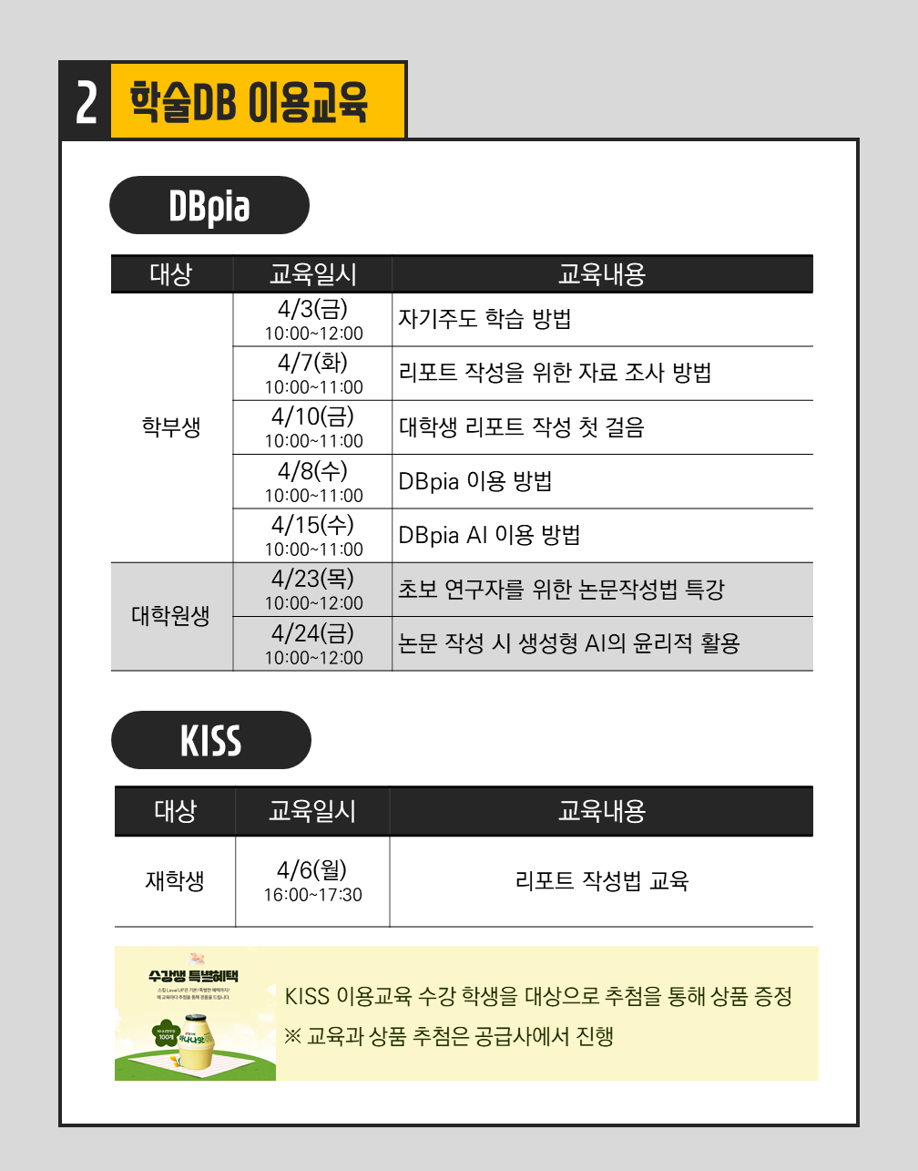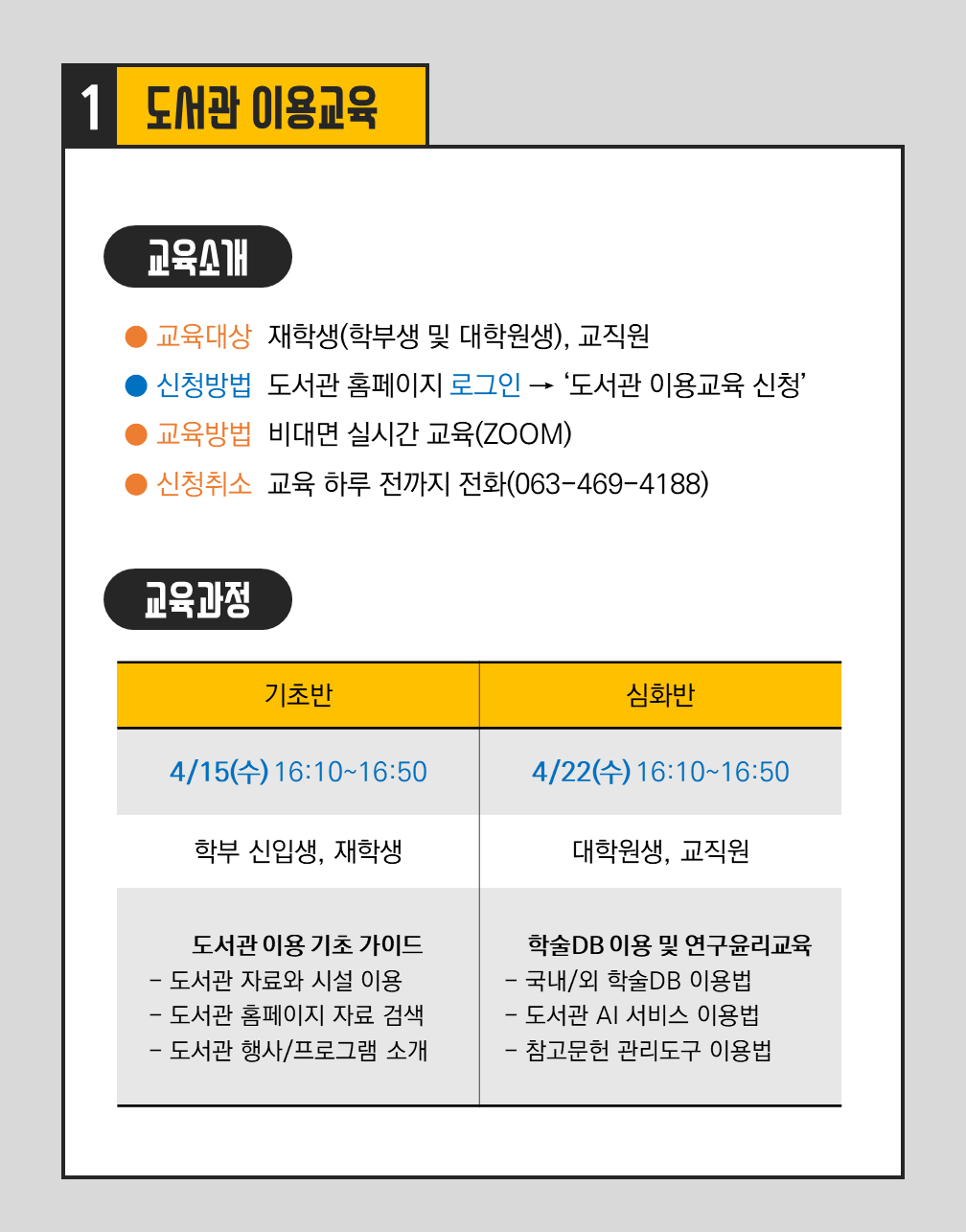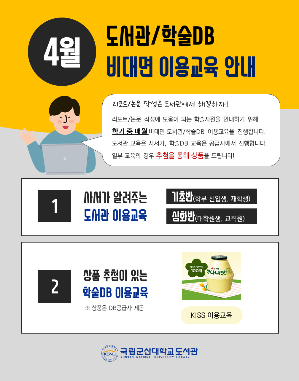 4¿ù ºñ´ë¸é µµ¼°ü/ÇмúDB À̿뱳À° ¾È³» µµ¼°ü ¼ºñ½º¿Í ÀÚ·á ÀÌ¿ë¹æ¹ý ¾È³»¸¦ À§ÇÑ ºñ´ë¸é ±³À°À» ÁøÇàÇÕ´Ï´Ù. ÀϺΠ±³À°Àº Ãß÷À» ÅëÇØ »óǰÀ» Á¦°øÇÏ´Ï °ü½ÉÀÖ´Â ÀçÇлý, ±³Á÷¿øÀº ¾Æ·¡ ±³À°½Åû ¹Ù·Î°¡±â¸¦ Ŭ¸¯ÇÏ¿© Èñ¸ÁÇÏ´Â ±³À°À» ½ÅÃ»ÇØ ÁÖ¼¼¿ä.